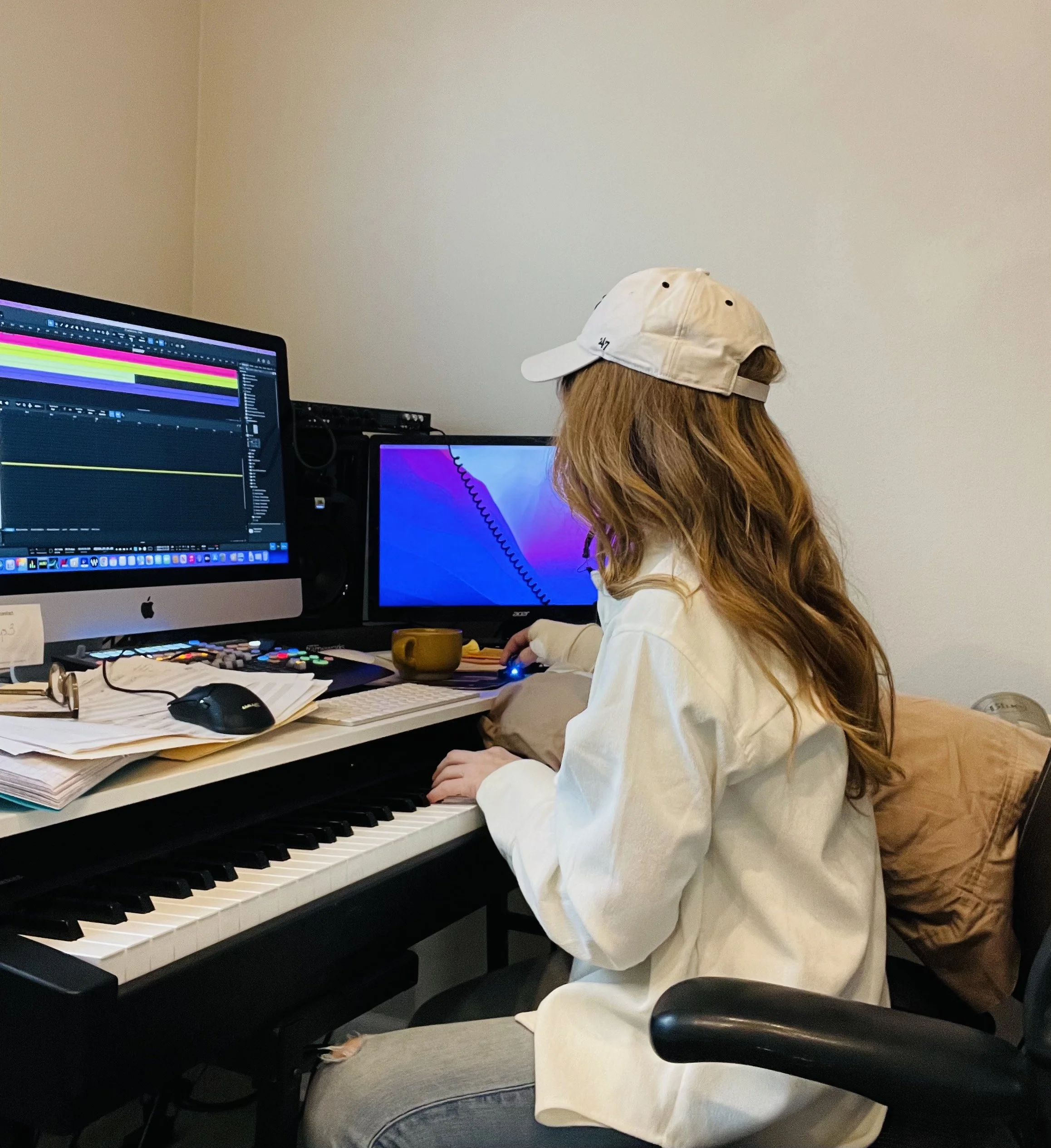 Working on tracks in my home music studio.